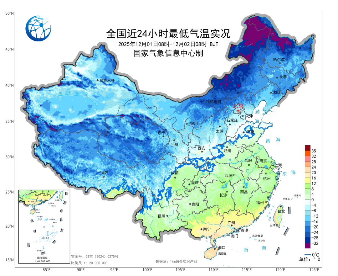 4日早晨,最低温度0℃线还将南压至浙江中南部、安徽南部、湖北北部一带。